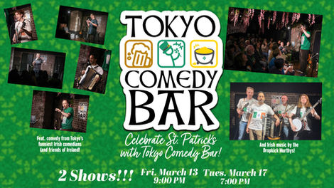 Celebrate St. Patrick's day with an evening of craic at Tokyo Comedy Bar! Irish Craft Beer, top notch stand-up comedy & Irish Folk Music.